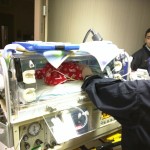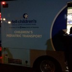 An ambulance came to the clinic, slid both girls in a transport incubator, and headed off with V riding in the jump seat while I failed to maintain a 500-foot distance following in our van.